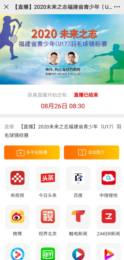 http://www.xmqycb.com//New-56.html2026-03-22<![CDATA[厦门视频直播,淘宝直播]]> 福建青少年羽毛球锦标赛 林丹、刘小龙倾力助阵直播拍摄